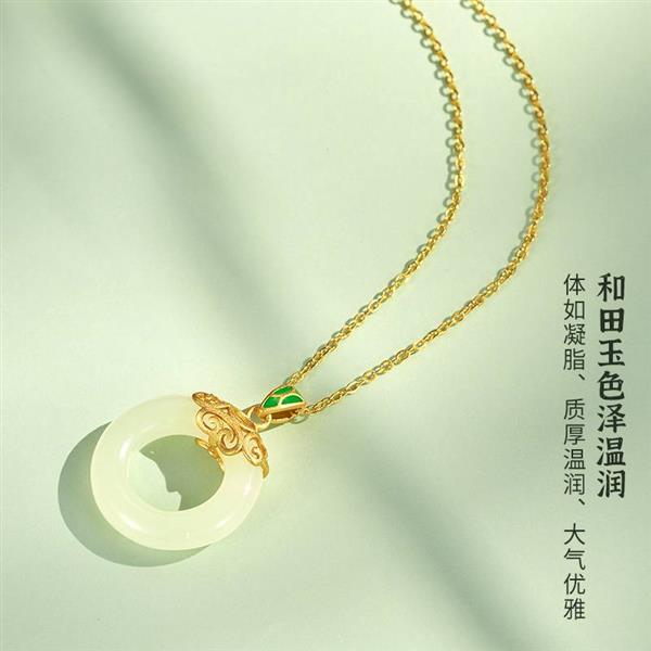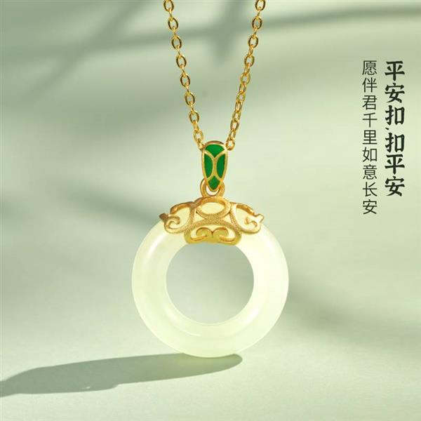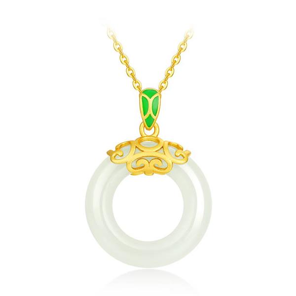 中国黄金S925银镶和田玉事事如意平安扣吊坠ZGHJ211438