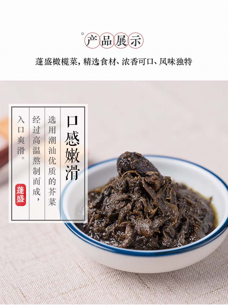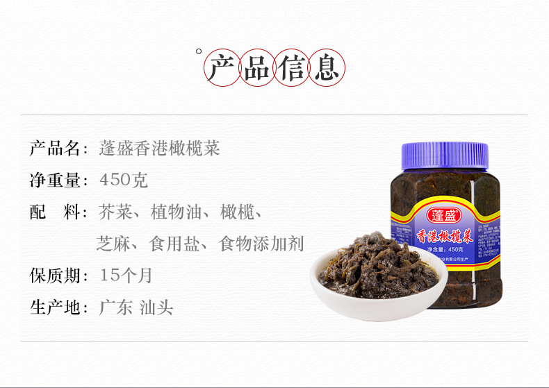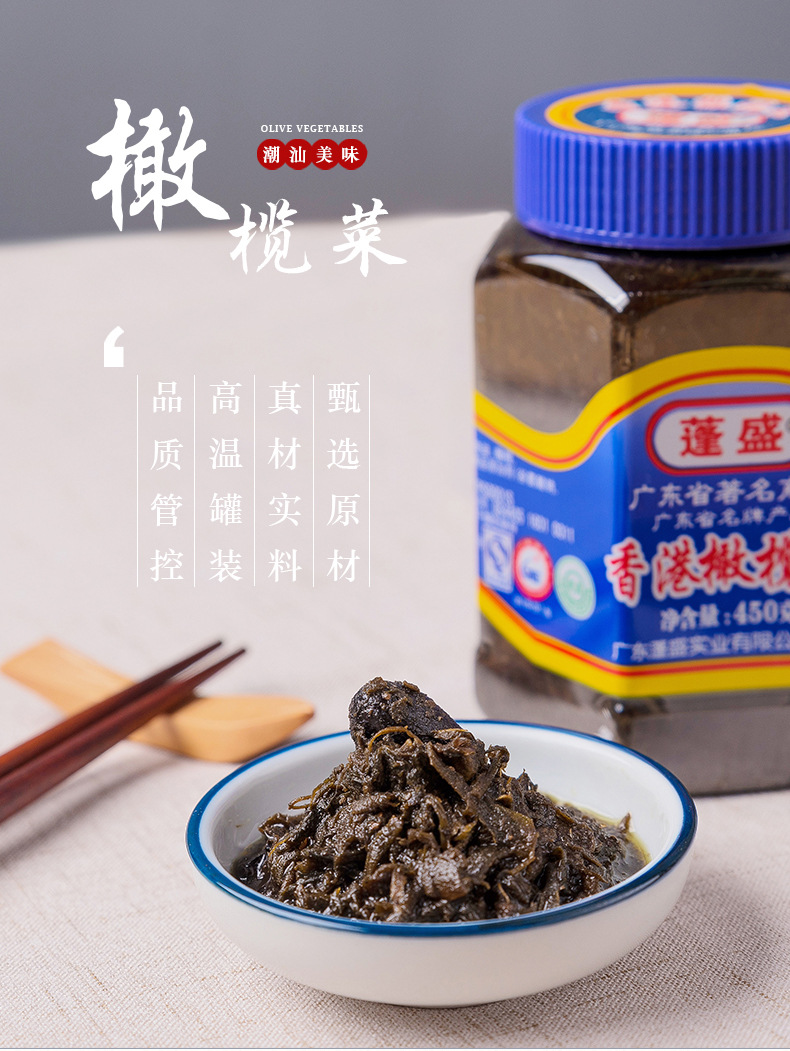 蓬盛香港橄榄菜大瓶装正宗潮汕下饭菜450g瓶拌面饭酱菜小菜咸菜