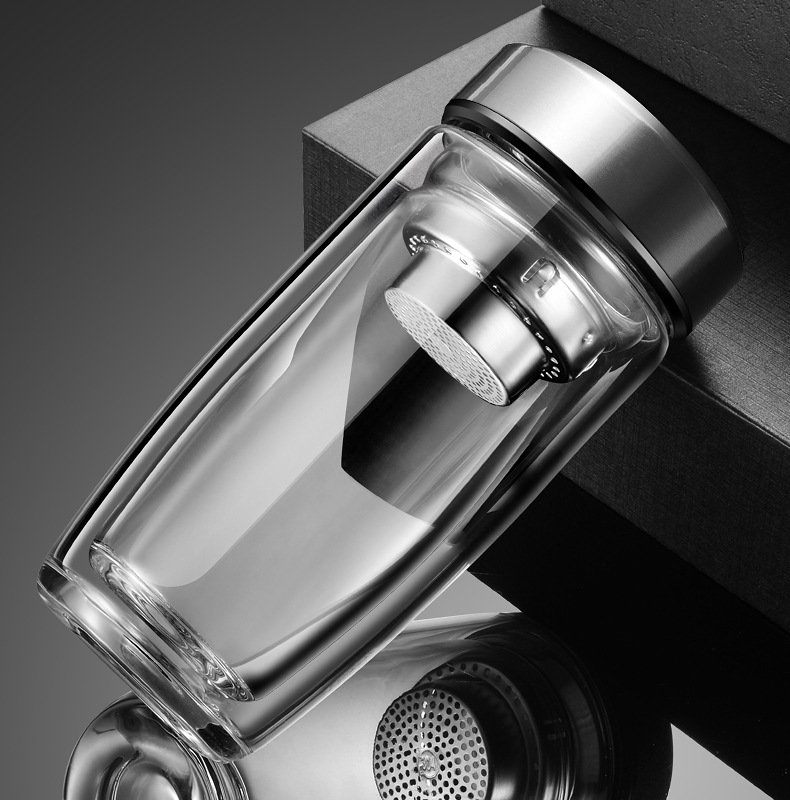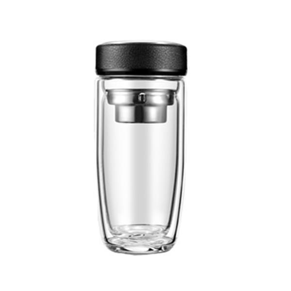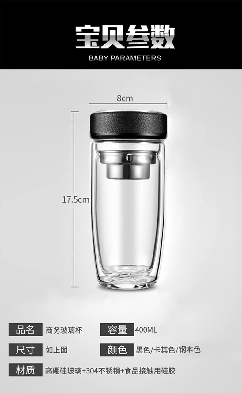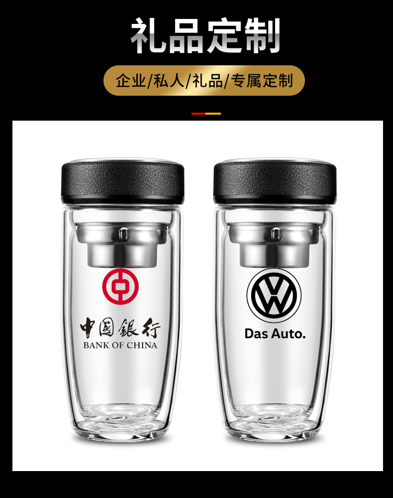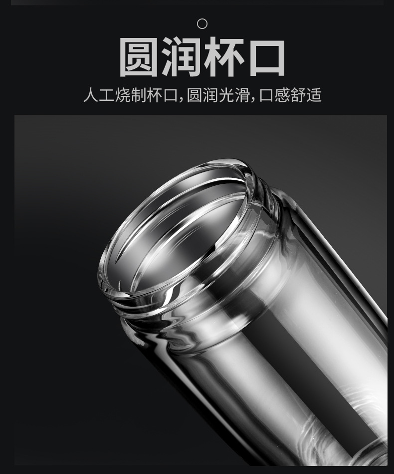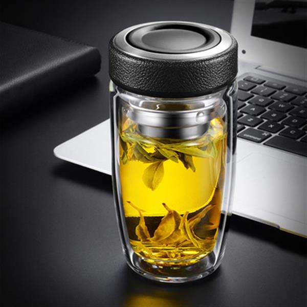 双层耐热高硼硅玻璃杯男女皮纹盖式泡茶水杯礼品