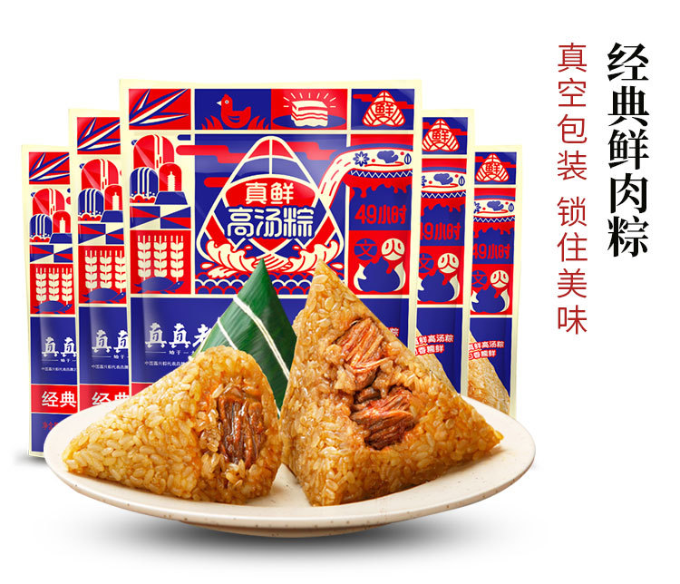 130g/袋*2袋 真真老老真空栗子肉粽130g浙江特产端午节嘉兴粽子速食早餐
