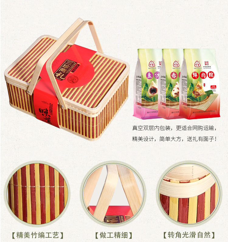 三珍斋粽子礼盒装多口味嘉兴粽子竹篮礼盒端午节公司福利礼品