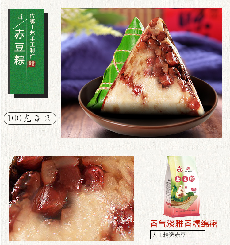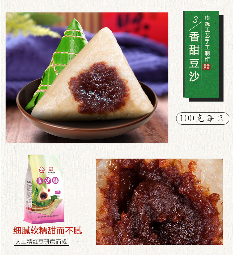130g/袋*2袋 真真老老红袍豆沙粽130g装浙江特产嘉兴甜粽子早餐速食