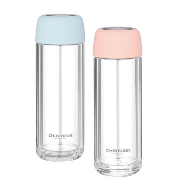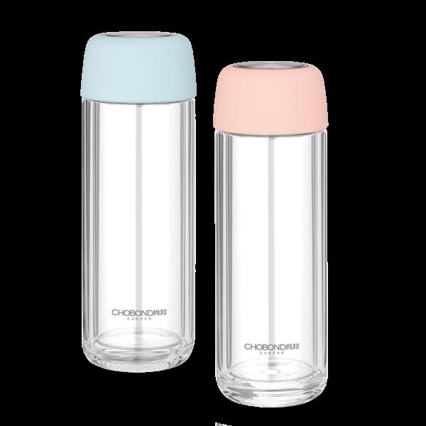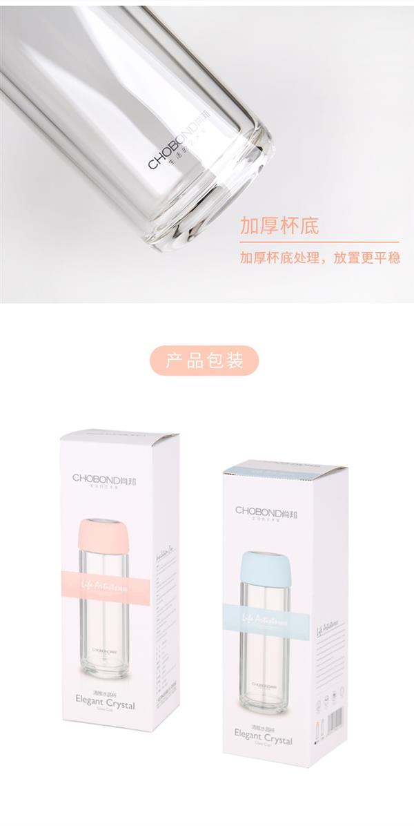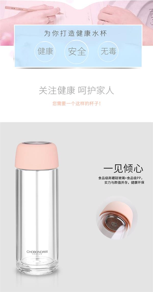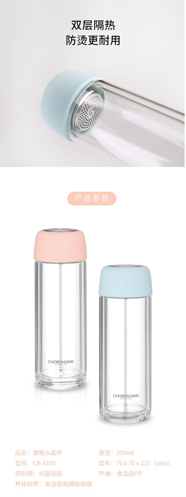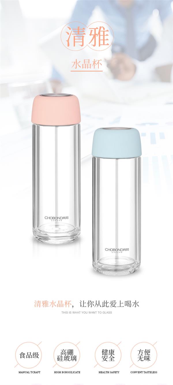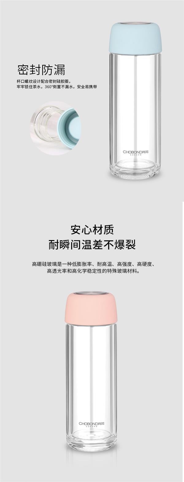 双层耐热高硼硅玻璃杯男女皮纹盖式泡茶水杯礼品